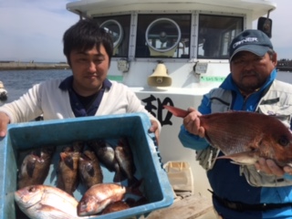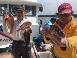 芦屋の松村さん、真鯛2枚、メバル数匹。